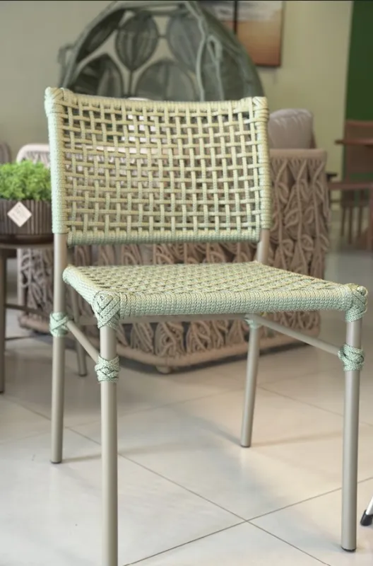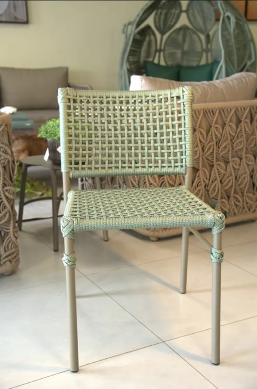 A pintura eletrostática fornece durabilidade e proteção contra as intempéries, enquanto o assento em corda náutica ou tela slim proporciona conforto e estilo únicos.